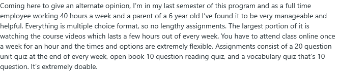 Students who are parents have provided insight into the flexible options and do-ability of the program while raising children.